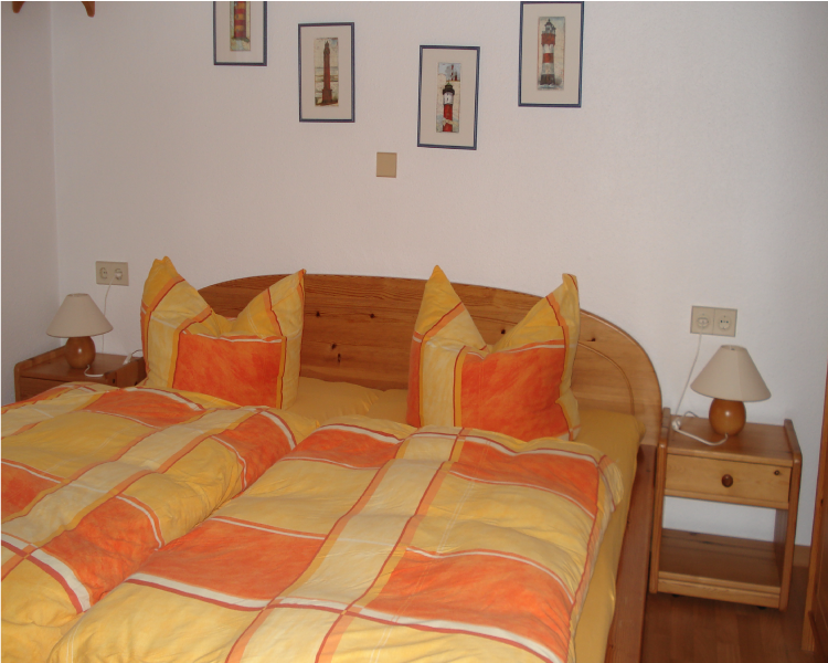 Sie besteht aus einem Wohnraum mit Kochzeile, einem Schlafraum mit Doppelbetten und einem Bad mit Dusche und WC.